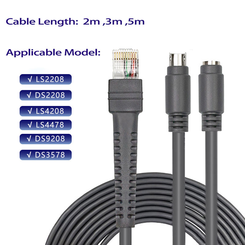Su misura in puro rame PS2 tastiera per RJ50 Scanner di codici a barre cavo Qr codice lettore connettore per simbolo LS2208 LS4208 LS3408