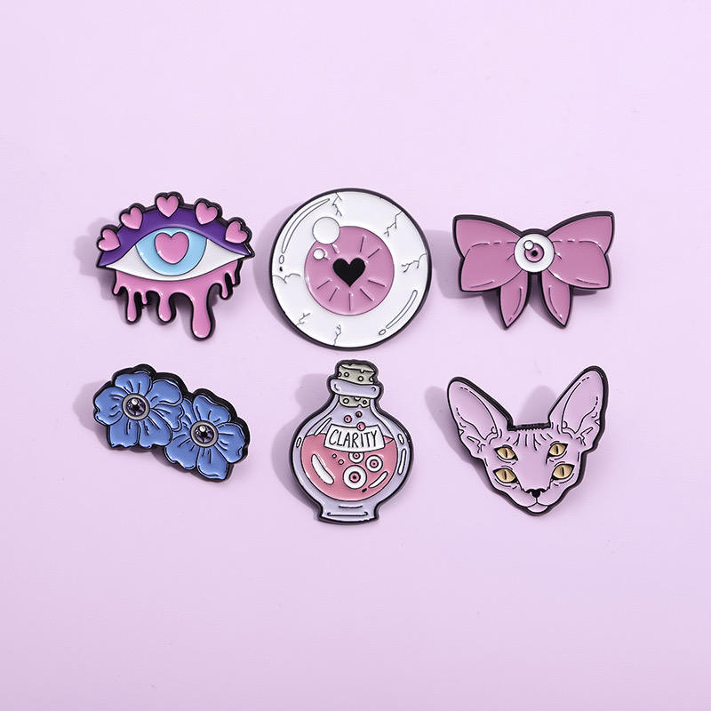 Su misura serie viola testa di tigre cravatta a fiocco stemmi con smalto morbido spille artigianali in metallo personalizzato spille