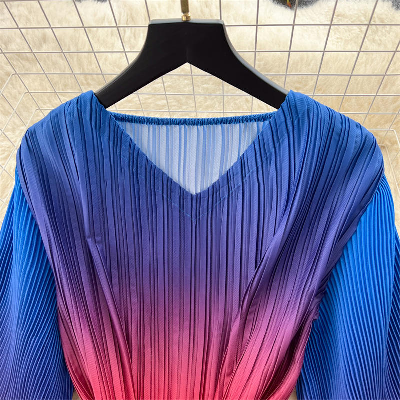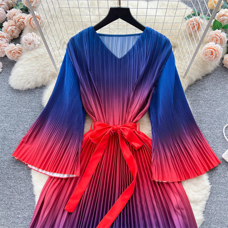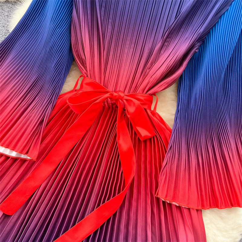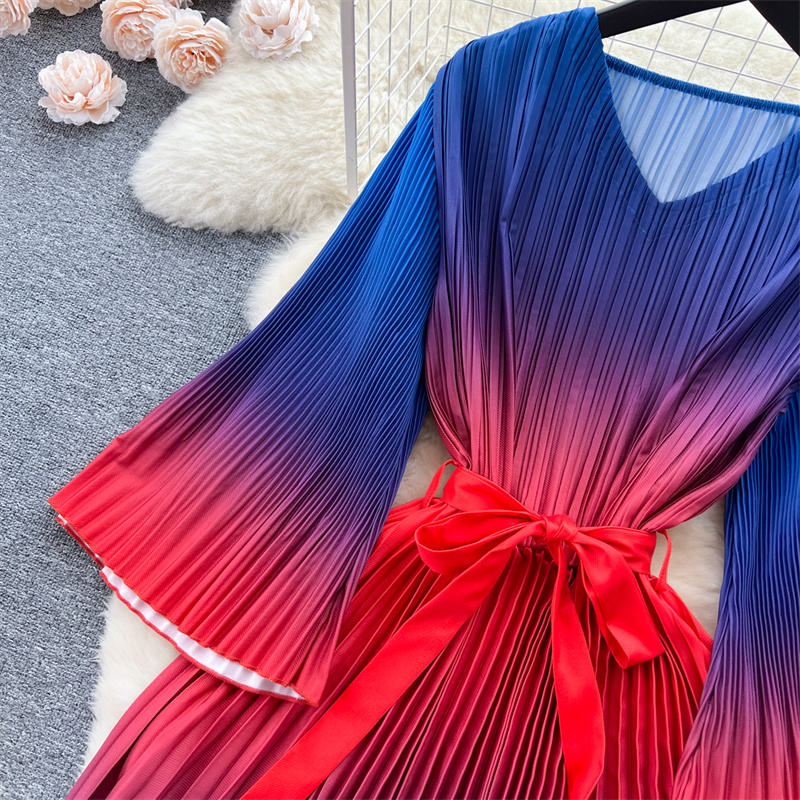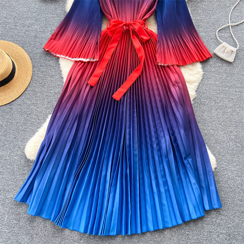Abito a maniche lunghe girocollo personalizzato da donna con lacci in vita che dimagrisce abito lungo blu rosso pieghettato