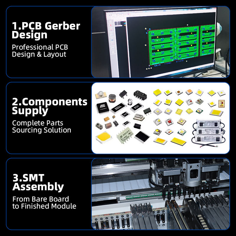 Fornitore personalizzato di componenti elettronici per l'assemblaggio di schede PCB SMT LED con file Gerber e PCB PCBA