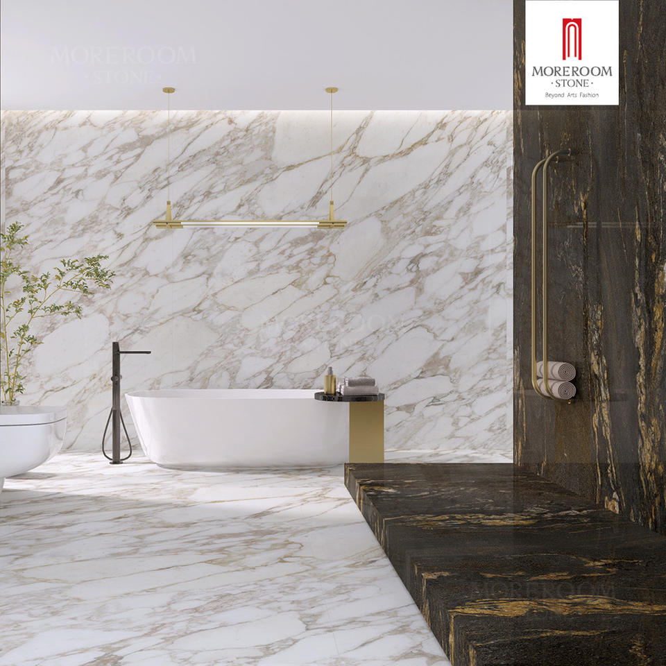 Lastra in Pietra Artificiale su Misura con Finitura Seta Cartier Gold Sinterflex per Piani Lavabo Durevoli e Piastrelle