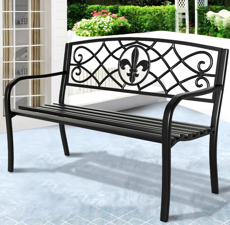 Panca da Giardino Lunga Nera Gotica Antifurto per Esterni con Fioriera Rialzata, Personalizzabile in Dimensioni e Logo