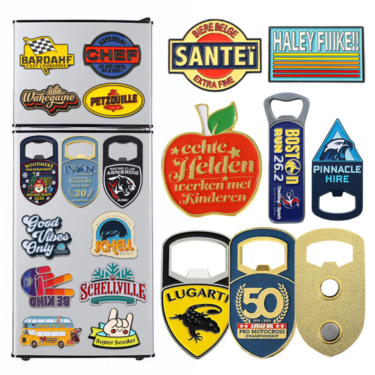Apribottiglie Magnetico Personalizzato in Metallo Nero Opaco con Logo Aziendale in Smalto Morbido, Souvenir per Frigorifero