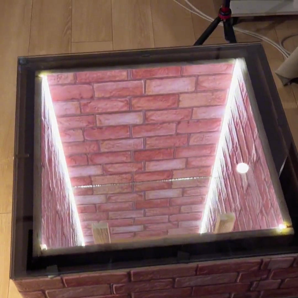 Tavolino da Caffè Personalizzato con Effetto Luminoso Speciale, Tunnel Abissale, Cubo Specchiato e Specchio Infinito