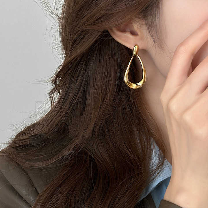 Orecchini a Perno Personalizzati in Acciaio Inox, Design Geometrico Ellittico Traforato a Goccia d'Acqua in Oro 18k, Gioielli Raffinati per Ragazze