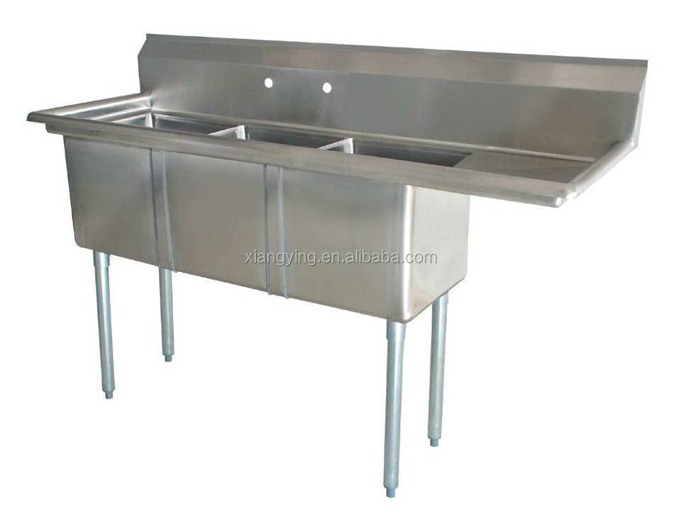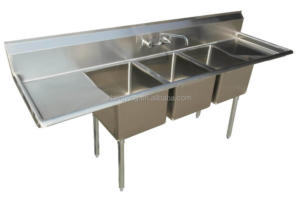 stainless steel three tubs wash sink
