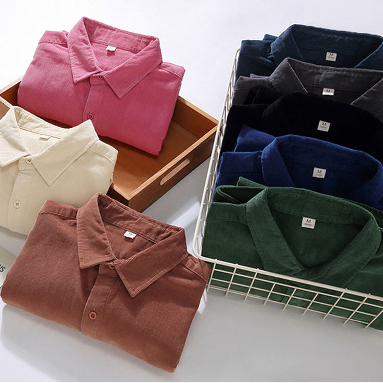 Camicia da uomo in velluto a coste tinta unita senza tasca con collo rovesciato su misura Polo a maniche lunghe