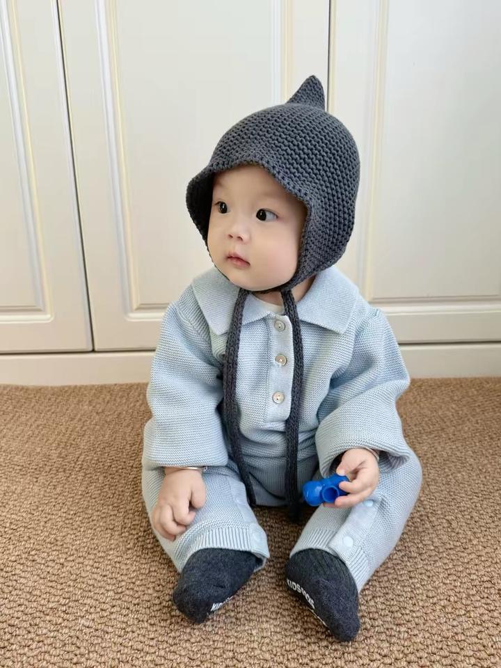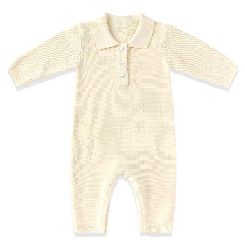 Tutina per Neonati Unisex Personalizzata in Maglia a Maniche Lunghe, 100% Cotone, Colletto Rovesciato, Maglione con Bottoni sulle Gambe, Body Lavorato a Maglia Piatta
