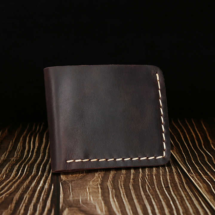 Portafoglio in vera pelle da uomo in vera pelle stile Vintage Bifold breve fatto a mano pieno fiore