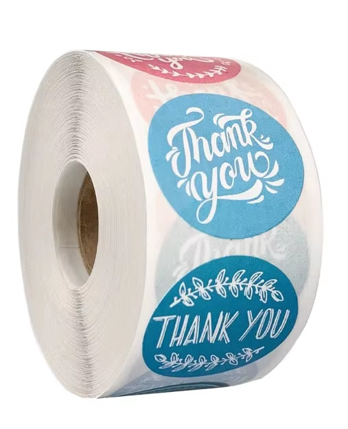 Etichette personalizzate adesive adesive impermeabili per imballaggio con Logo "grazie" UV stampato "etichetta sigillata per la stampa di trasferimento artigianale regalo