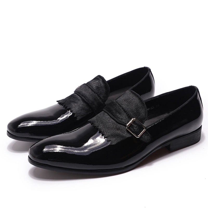 Customized Wholesale Pointed Patent Leather Smooth Surface Shiny Anti-Odor Autumn Formal Shoes Black Men's High Grade Monk Strap