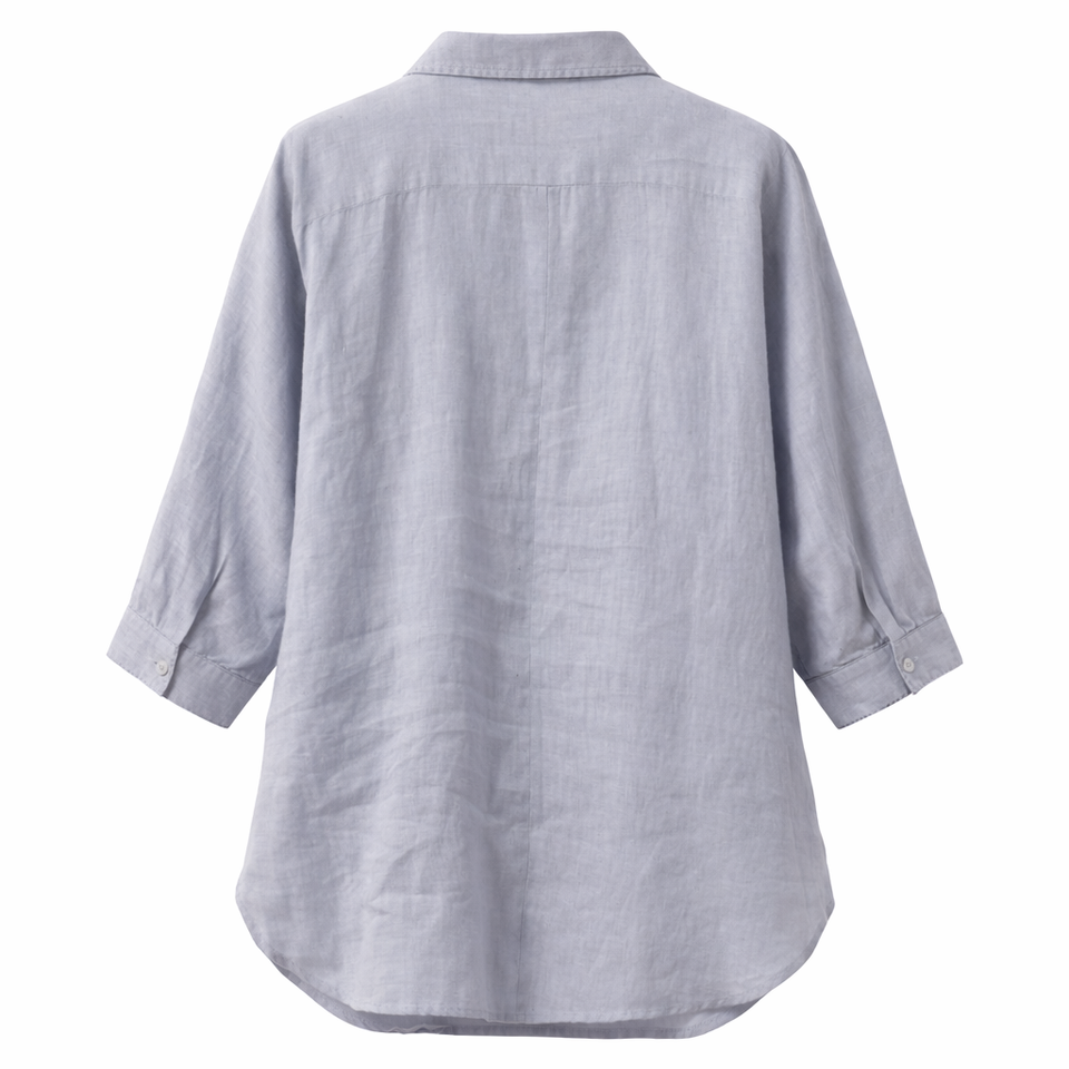 Customized Women's Linen Cotton Blend Light Blue Beige Floral Applique Shirt Collar Curved Hem Casual Blouse Custom Print Shirt
