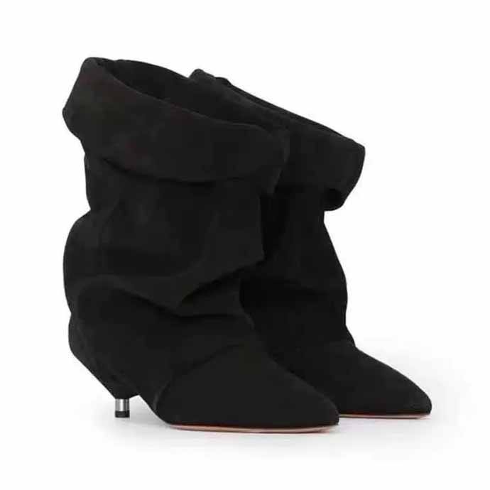 Scarpe da donna personalizzate con maniche plissettate stivali con tacco sottile a tubo grande alla moda stivali da donna con tacco basso e risvolto a punta stivali da donna