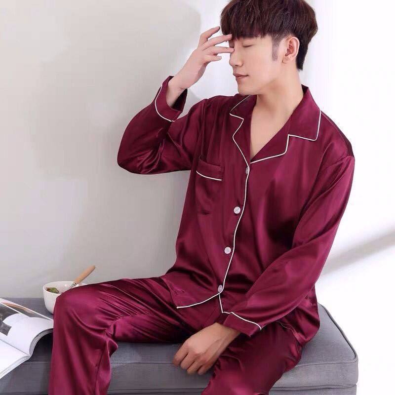 Customized logo Mens Pajamas Long Sleeved Softness Mens Sleepwear 2 Pieces Set Home Clothing for Men