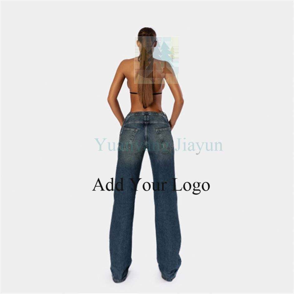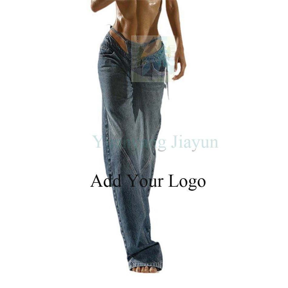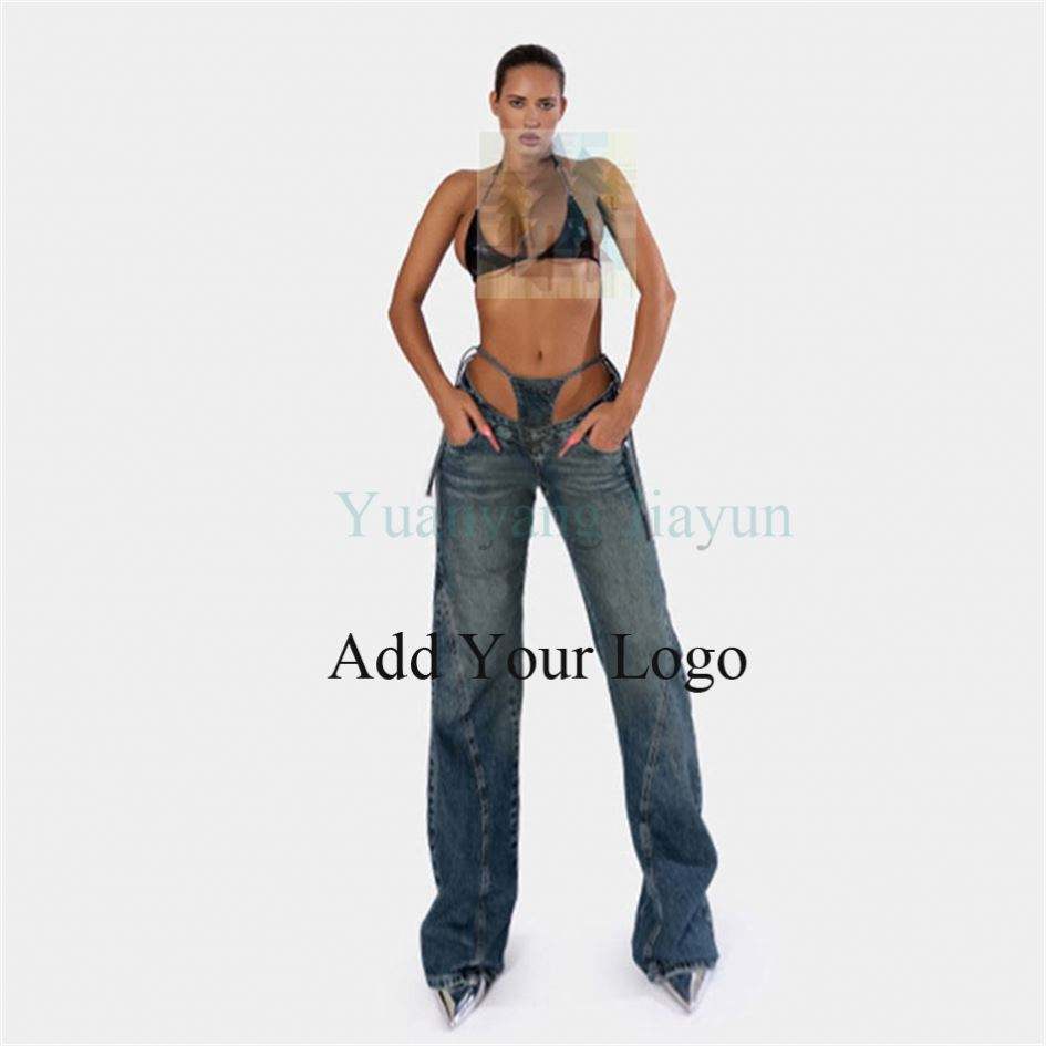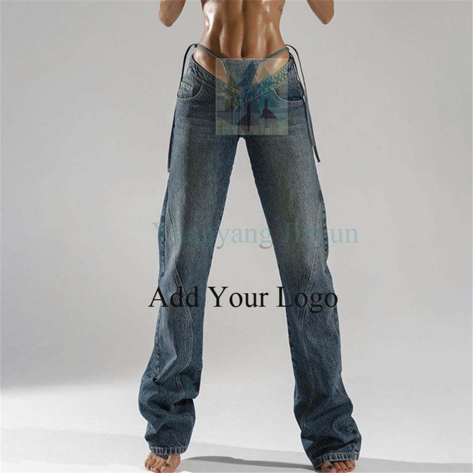 Pantaloni in Denim blu da donna pantaloni in Denim con lacci a vita alta