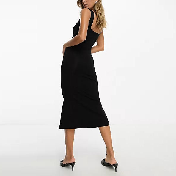 Cut and Sew Casual Summer Softline Square Neck Sleeveless Slim Fit Midi Women's Dresses