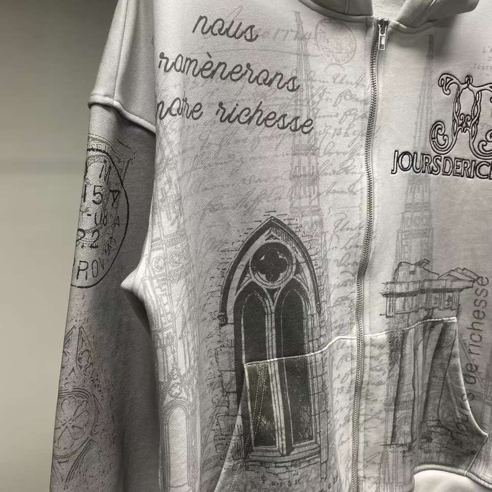 Felpa con Zip Vintage in Cotone French Terry 500GSM, Stampa Serigrafica Integrale, Ricamo, Lavaggio Vintage, Produzione OEM