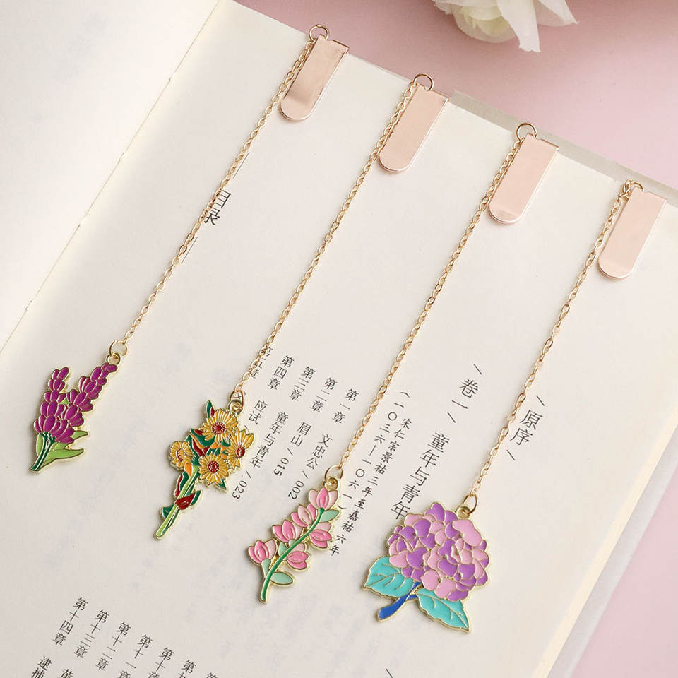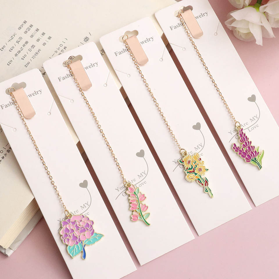 Graziosi segnalibri a fiore 3D con catena metallica con taglio Laser unico segnalibro sfuso a sublimazione di girasole segnalibro inciso in alluminio