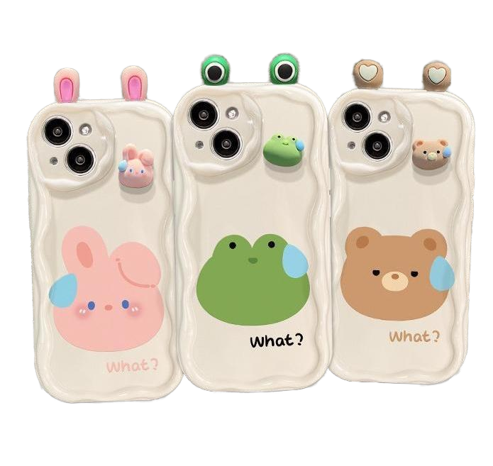 Custodia per telefono in Silicone per iPhone 16 15 14 13 12 Pro Max accessori per cellulare Cover protettiva simpatica rana 3D orso coniglio