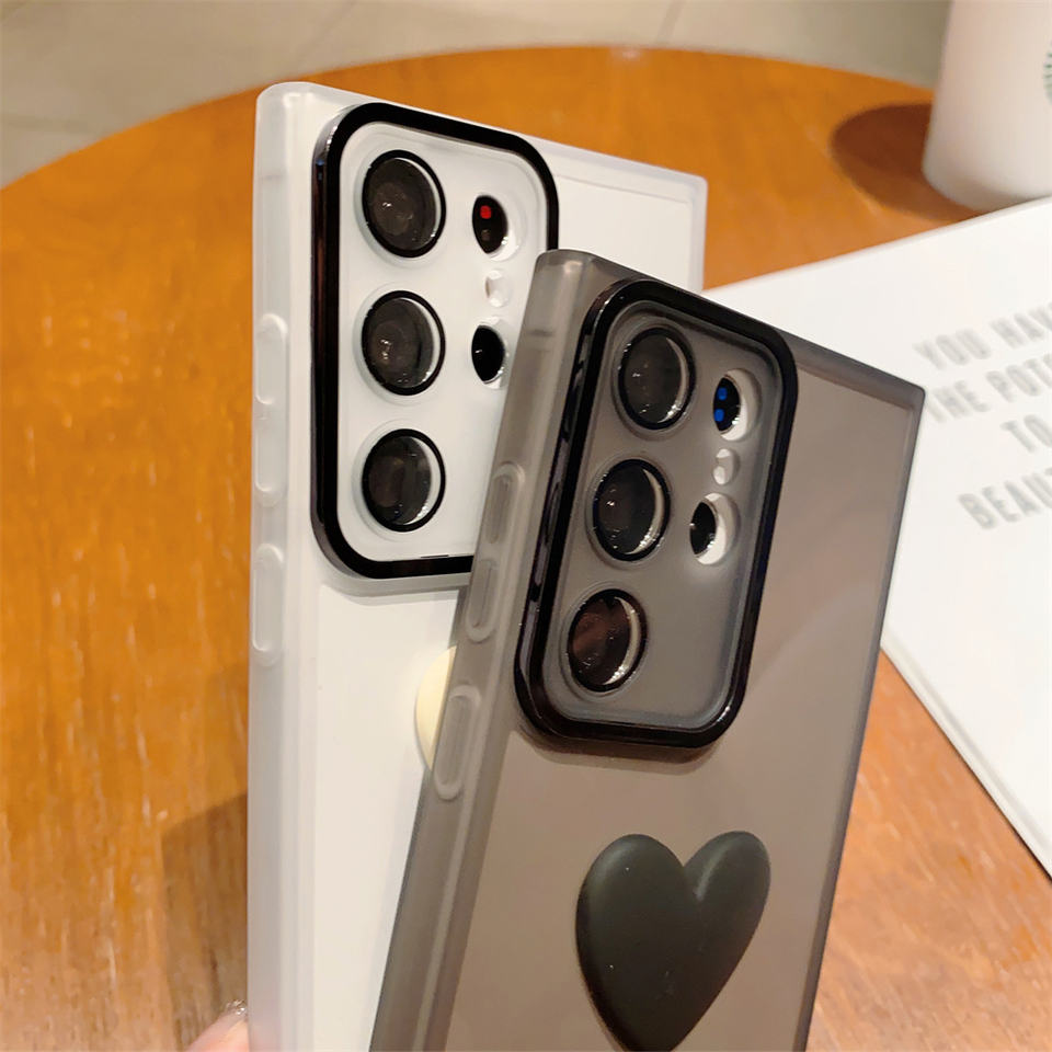 Cute 3D Love Heart Lens Film Matte Case for Samsung S23 Ultra A53 5G A52 A14 A34 A54 A23 A33 A32 A24 4G Soft Silicon Clear Cover