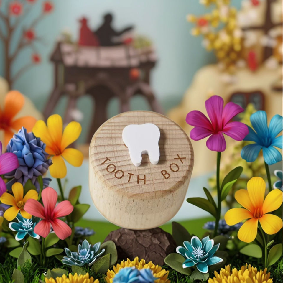 Scatola in Legno 3D per Denti da Latte, Design Moderno, Ecologica, Incisa, Contenitore Sicuro per Bambini e Bambine