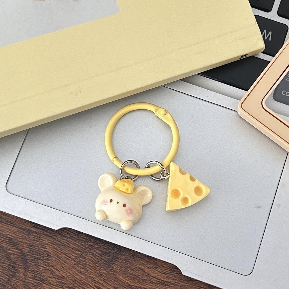Carino adorabile anello con formaggio in PVC portachiavi divertente accessorio per zainetto con ciondolo a forma di latte all'ingrosso