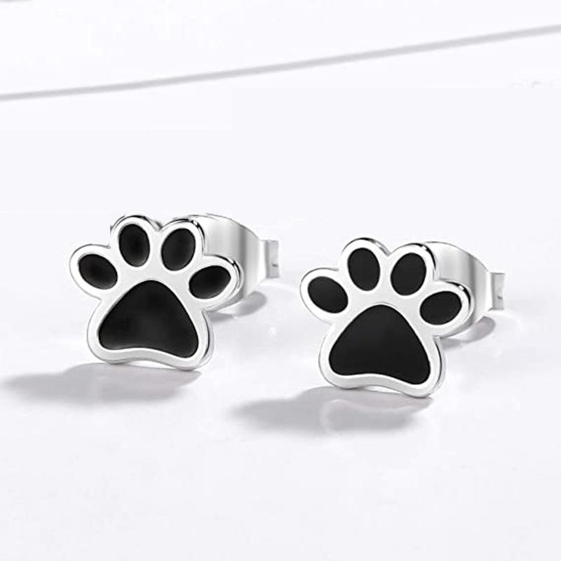 Cute Animal Paw Stud Earrings White Gold Plated Zinc Alloy Unisex Gift Jewelry Fashion Earrings Bezel Setting