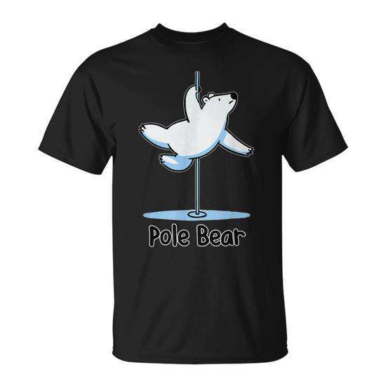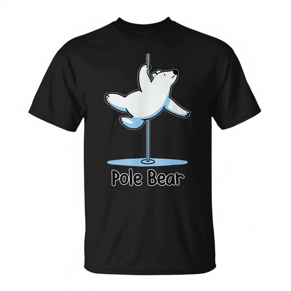 T-Shirt con Gioco di Parole a Tema Animale: Orso Polare che Balla sul Palo, Design Promozionale Accattivante