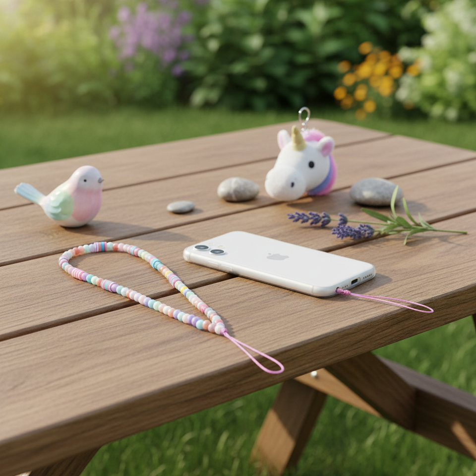 Cute Animal and Cartoon Design Crystal and Acrylic Bead Mobile Phone Chain 3# for Phone Case