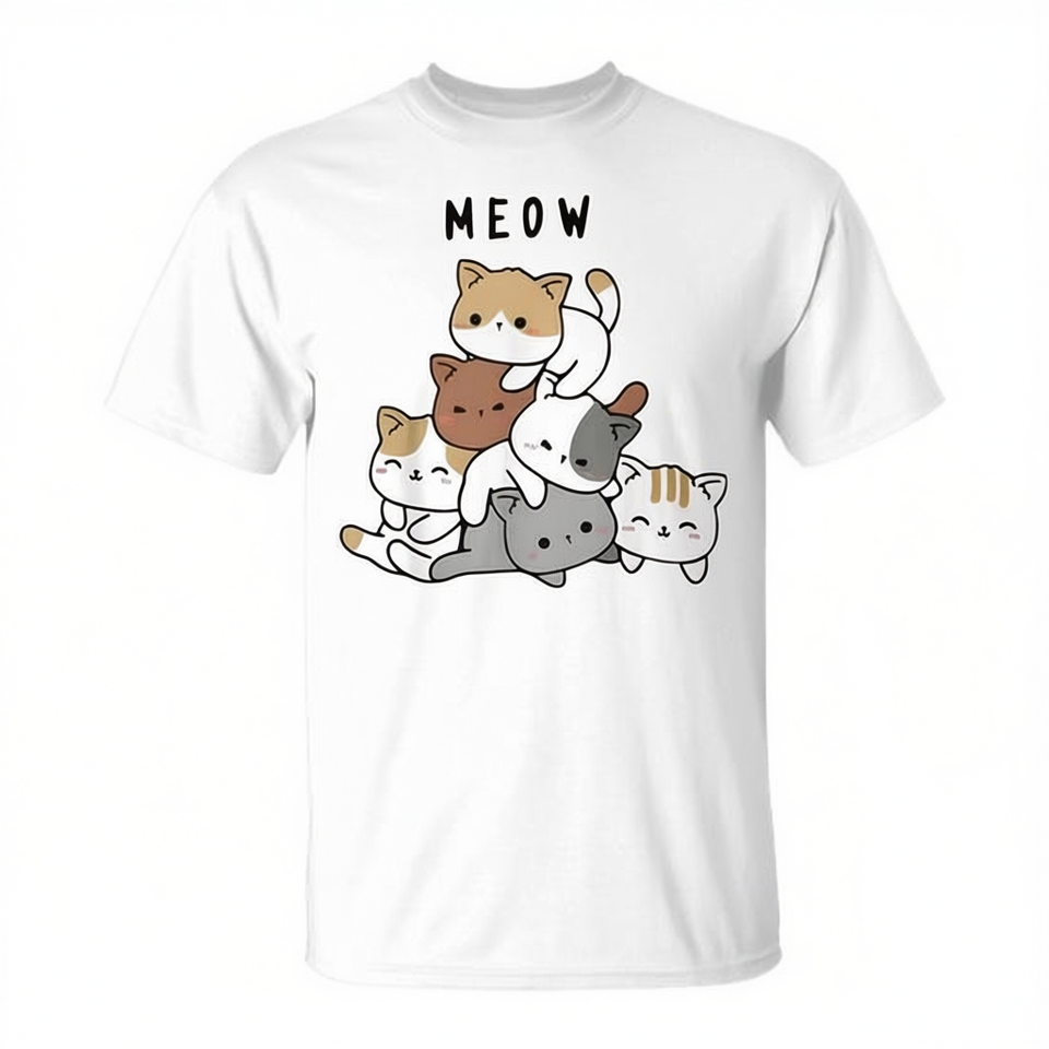 T-Shirt Promozionale con Gattini Anime per Amanti dei Gatti, Simpatico Disegno di Gatti Accatastati