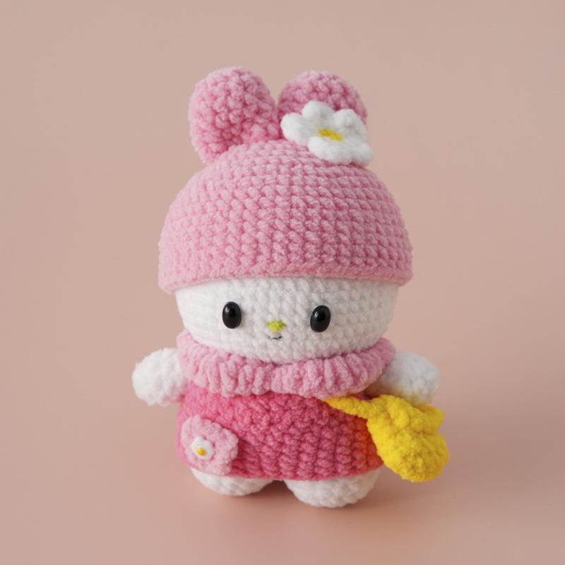 Graziosa Bambola di Coniglio all'Uncinetto in Stile Art Déco, Accessorio Trendy Fatto a Mano in Lana per Studenti