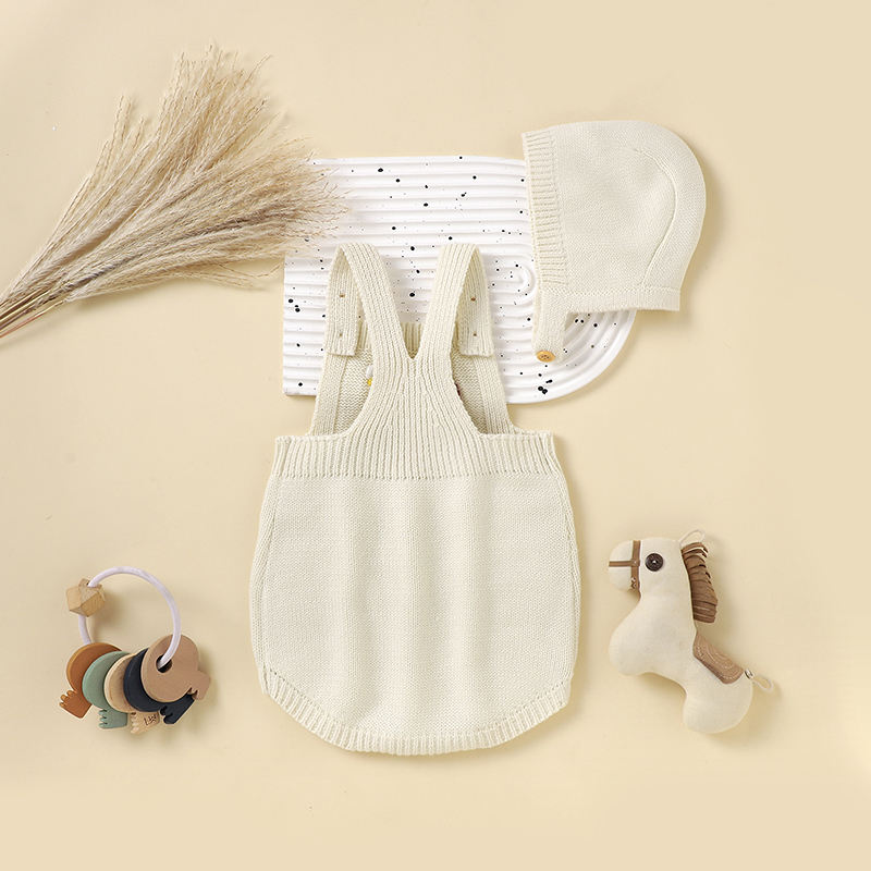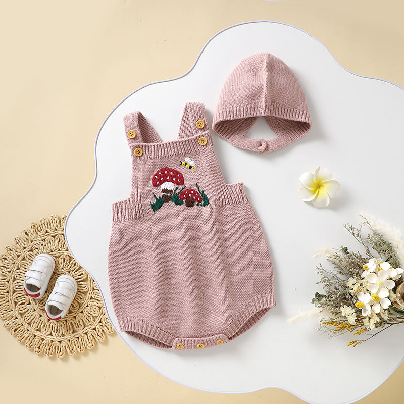 Grazioso Completo in Maglia per Neonati, Set 2 Pezzi con Tutina Ricamata a Funghi e Cappellino, Outfit Primaverile per Fotografia Neonatale