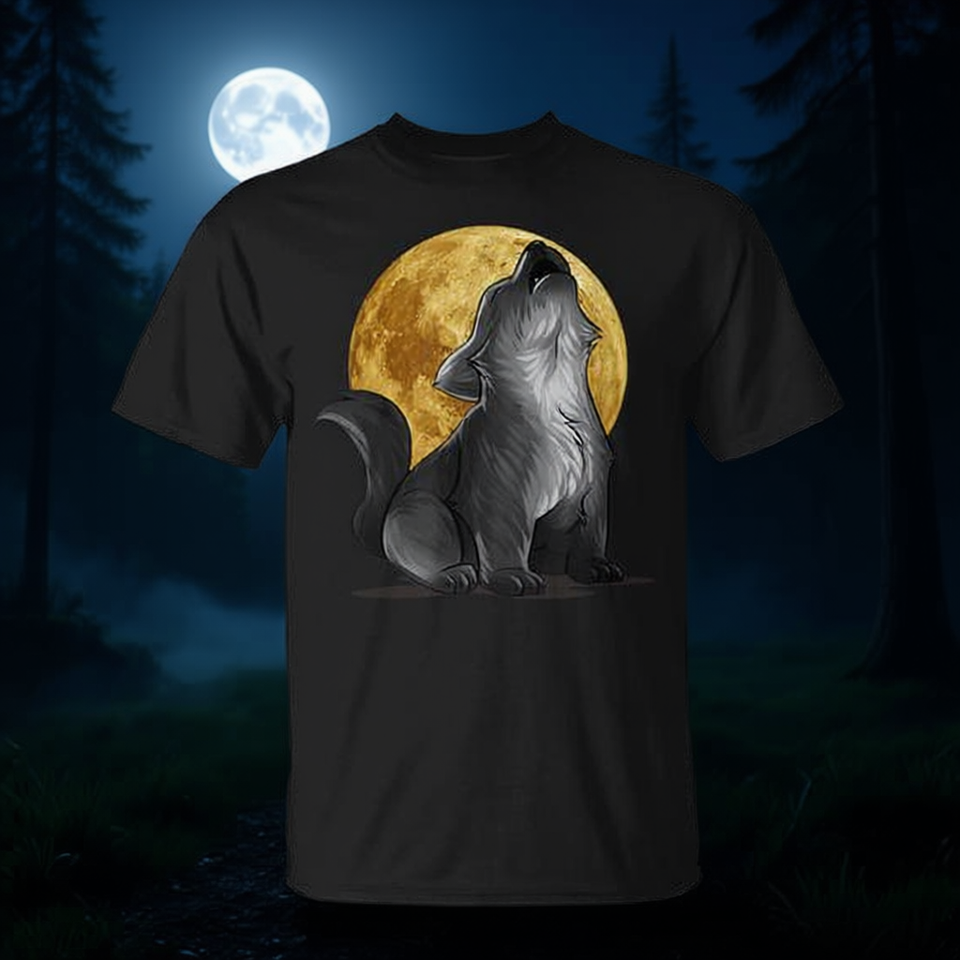 T-shirt con schizzo di un simpatico lupo che urla, arte animale