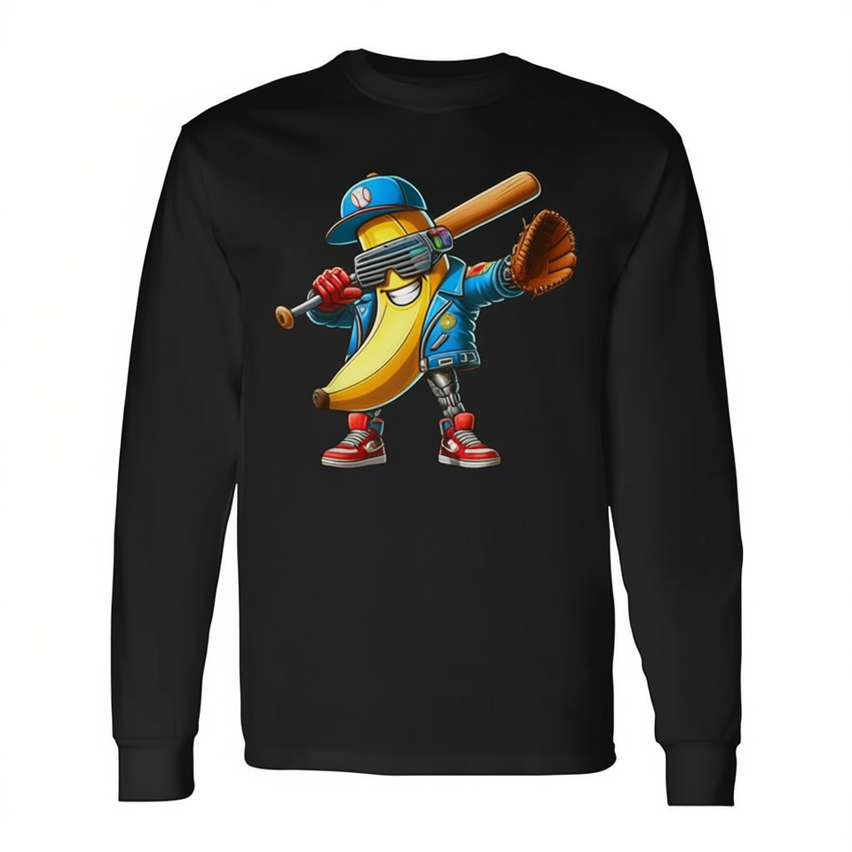 Simpatica maglietta a maniche lunghe con stampa di banane, design per gli amanti della frutta, tema baseball