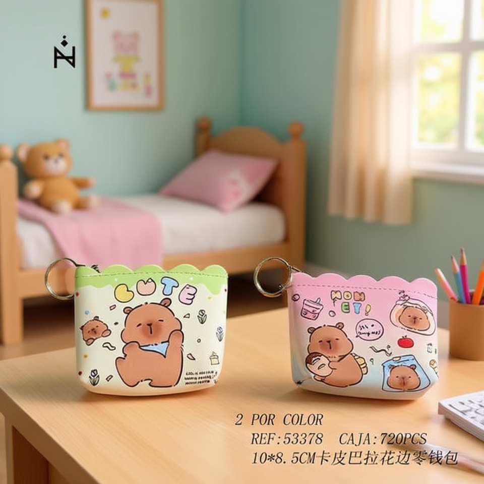 Cute Bear Coin Purse 10x8.5Cm Zipper Wallet With Keychain For Girls Cartoon Style Mini Compact Design
