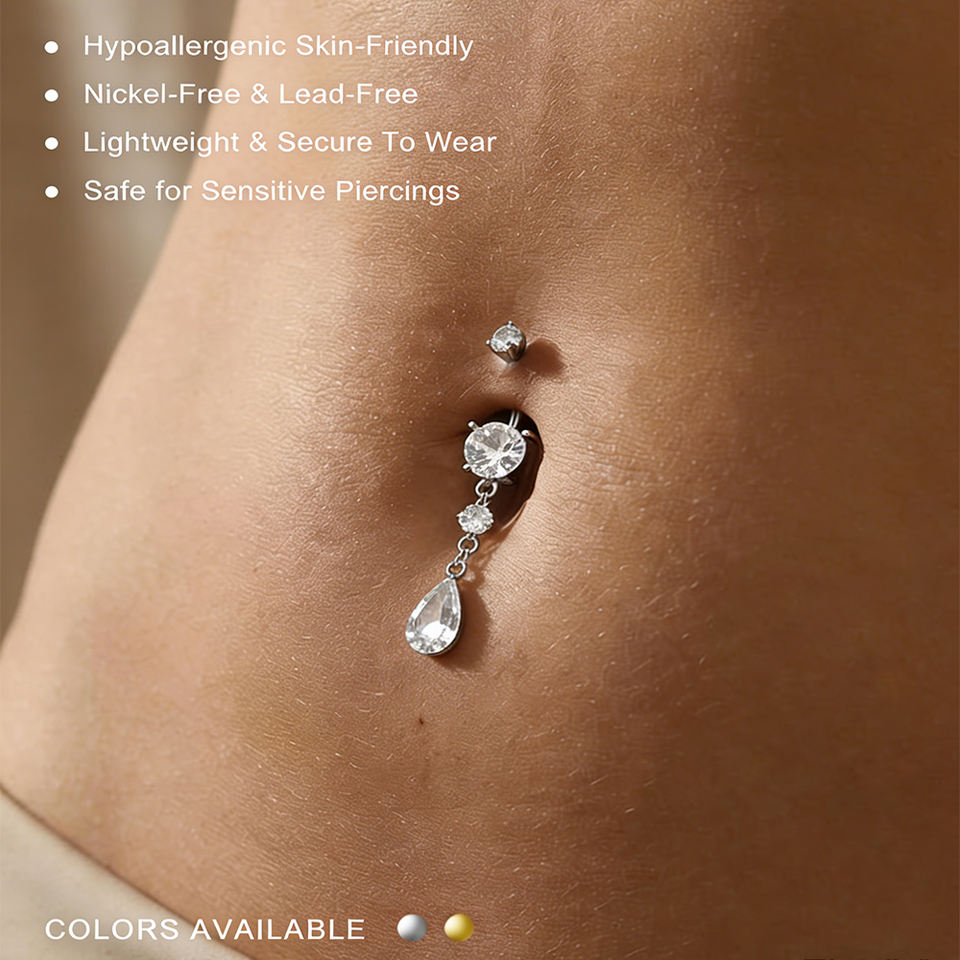 Graziosi Piercing per Ombelico Pendenti 14G a Goccia d'Acqua per Donne, Anello per Ombelico in Acciaio Inossidabile, Gioielli per Piercing all'Ombelico