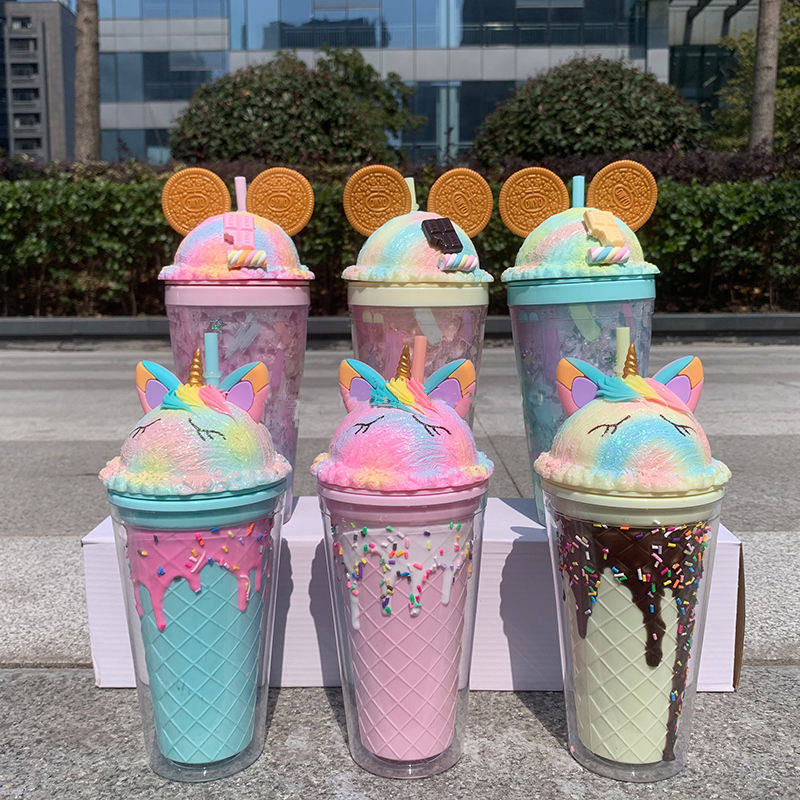 Cute biscuit mouse ears che accompagna tazza di paglia a doppio strato per caffè in tazza da tè
