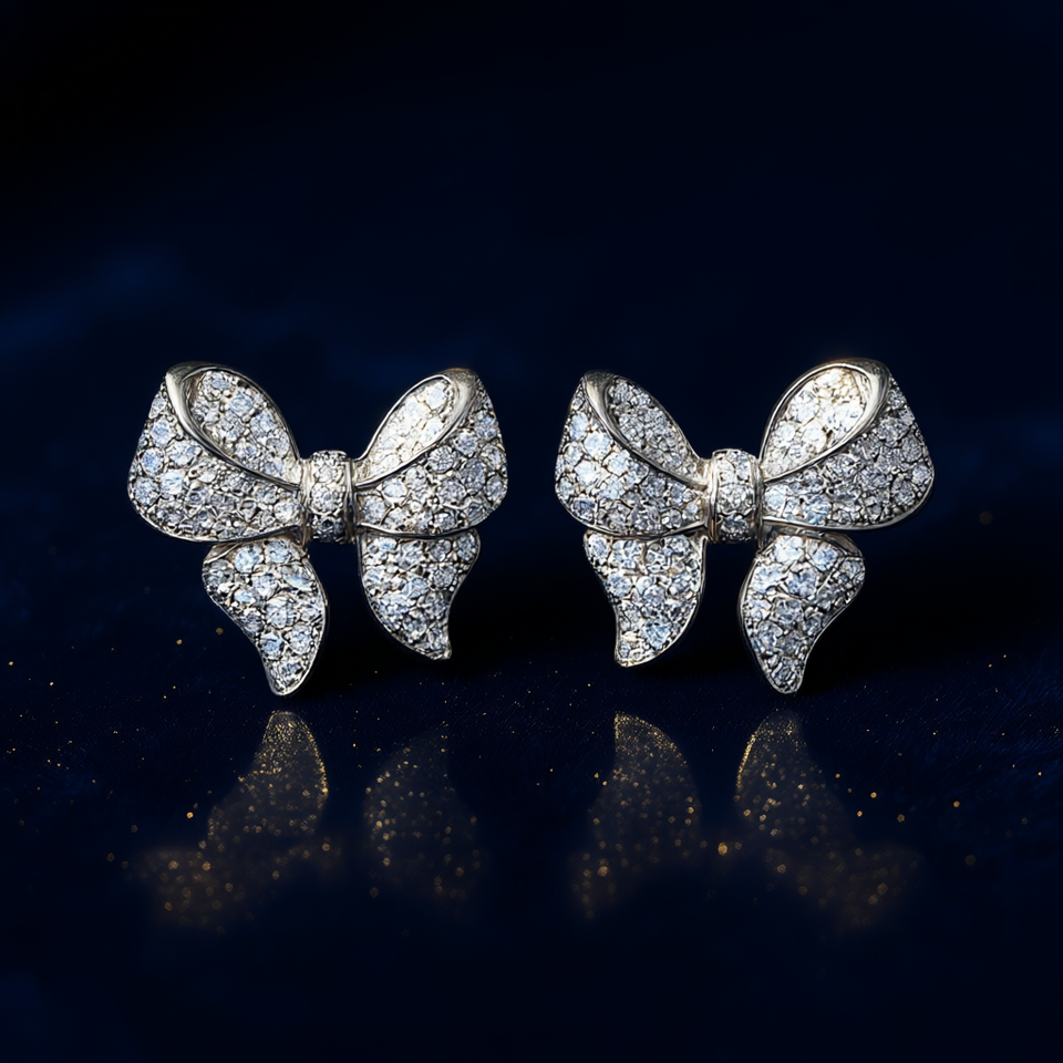 Cute Bow Diamond Earrings White Gold Round Brilliant Cut G Color Natural Diamonds Women's Everyday Wear Jewelry