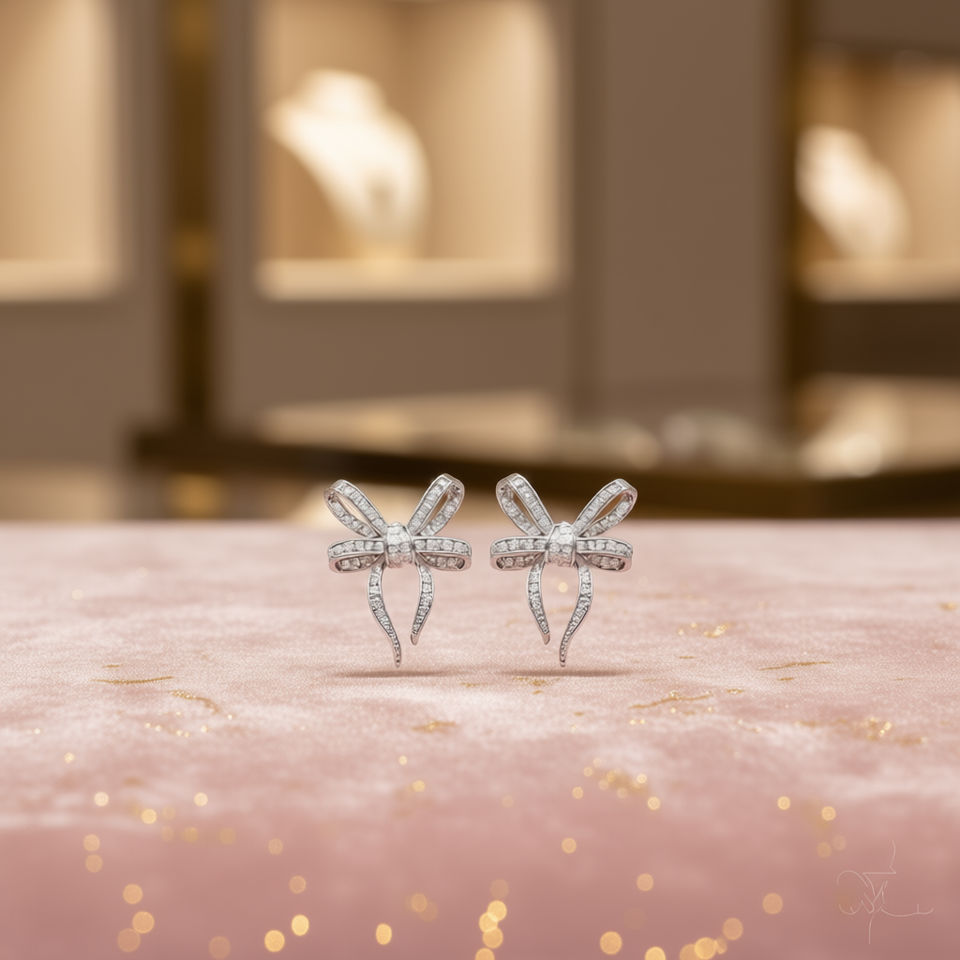 Cute Bowknot Stud Earrings White Gold Plated Rhinestone Crystal Party Jewelry for Women Fashion Earrings