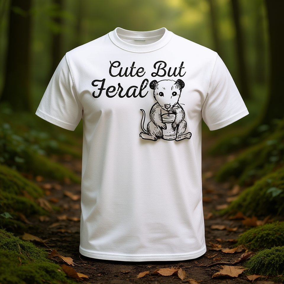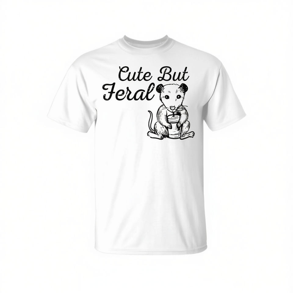 T-shirt con stampa di un opossum carino ma selvaggio, unisex, taglia media per adulti, bianco, design grafico