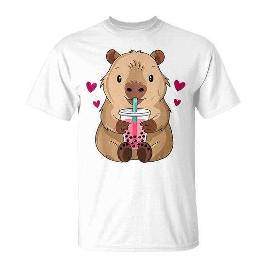 T-Shirt per Ragazze con Simpatica Capibara Kawaii che Beve Bubble Tea