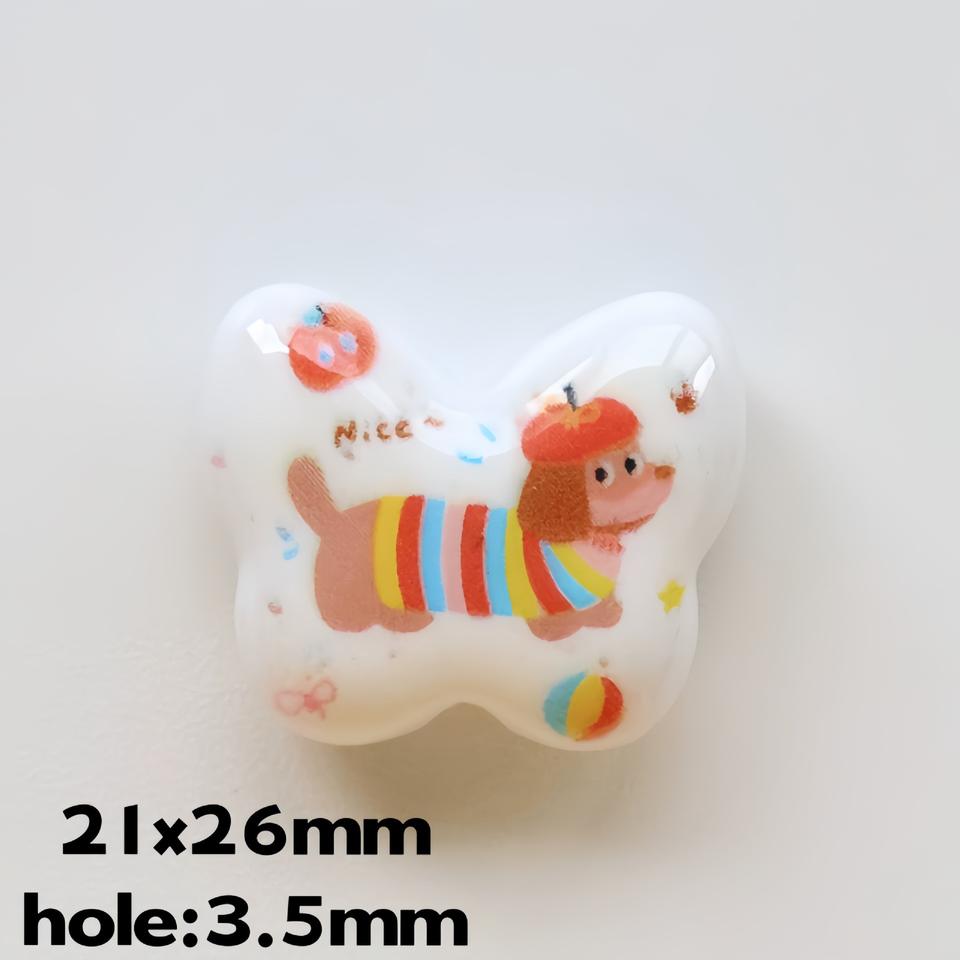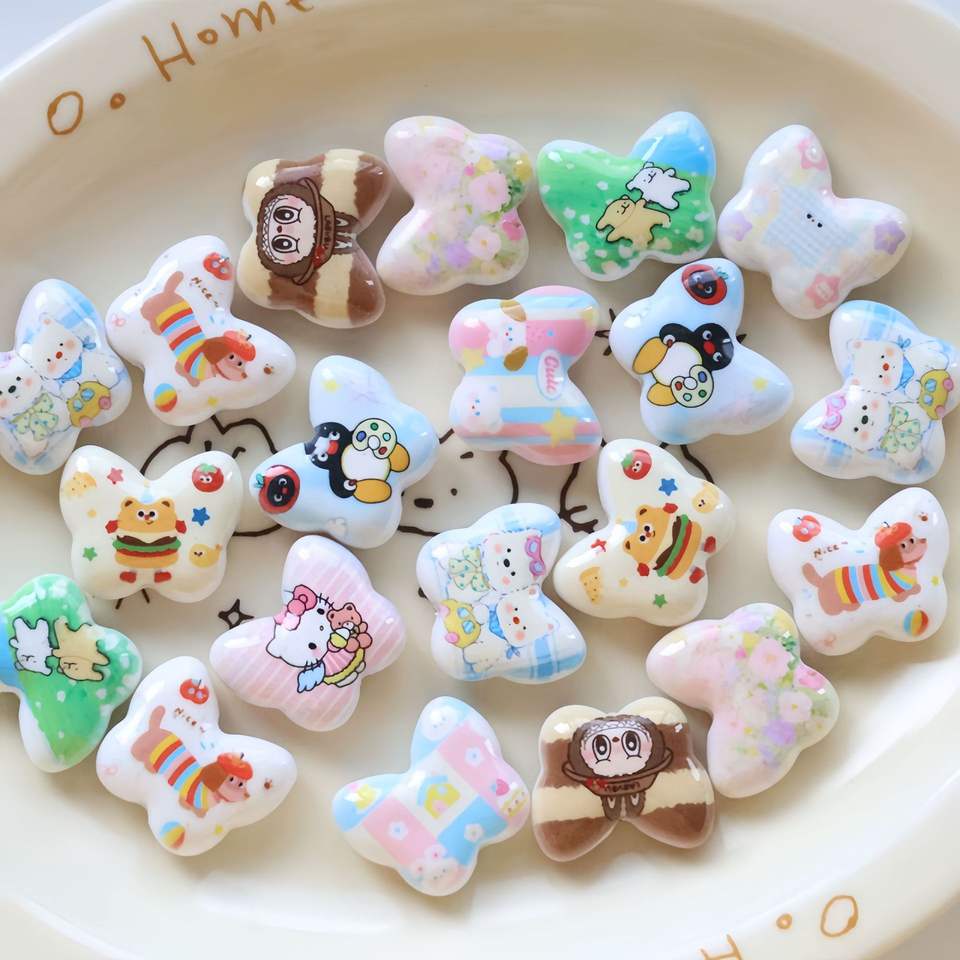 Perline Sciolte con Stampa di Animali Cartoon e Farfalle, Materiali per Braccialetti e Collane Fai-da-Te, Accessori per Gioielli