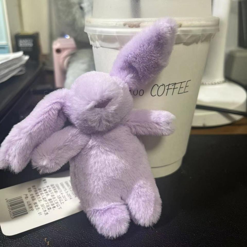 Cute Cartoon Bunny Metal Keychain Plush Stuffed Animals Toys Pendant Rabbit Keychain for Girls Ball Shape Bag Accessories