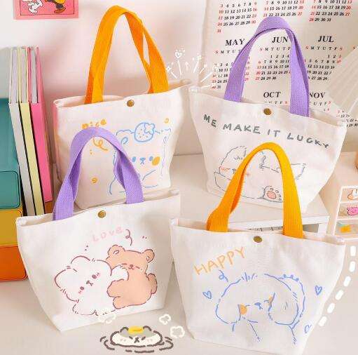 Cute Cartoon Canvas Tote Bag Aesthetic Shoulder Bag with Interior Pocket Shopping Handbags
