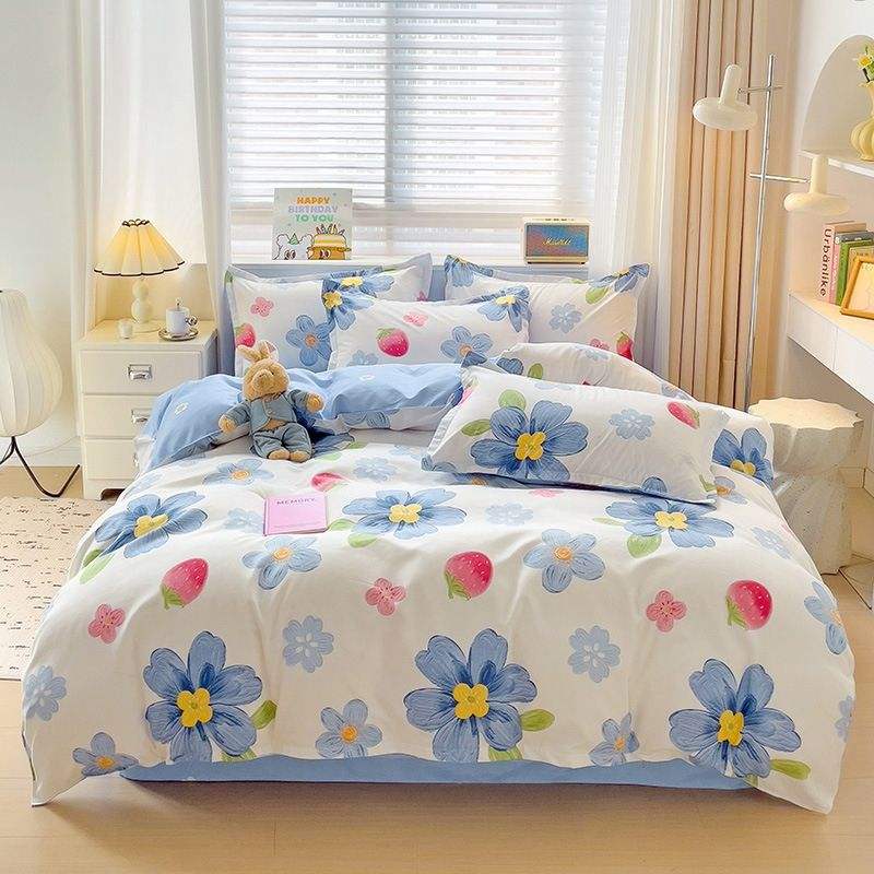 Cute Cartoon Four Seasons Double Custom Duvet Cover Sets Sheet Pillowcase Purple Pink Yellow Bedding Set