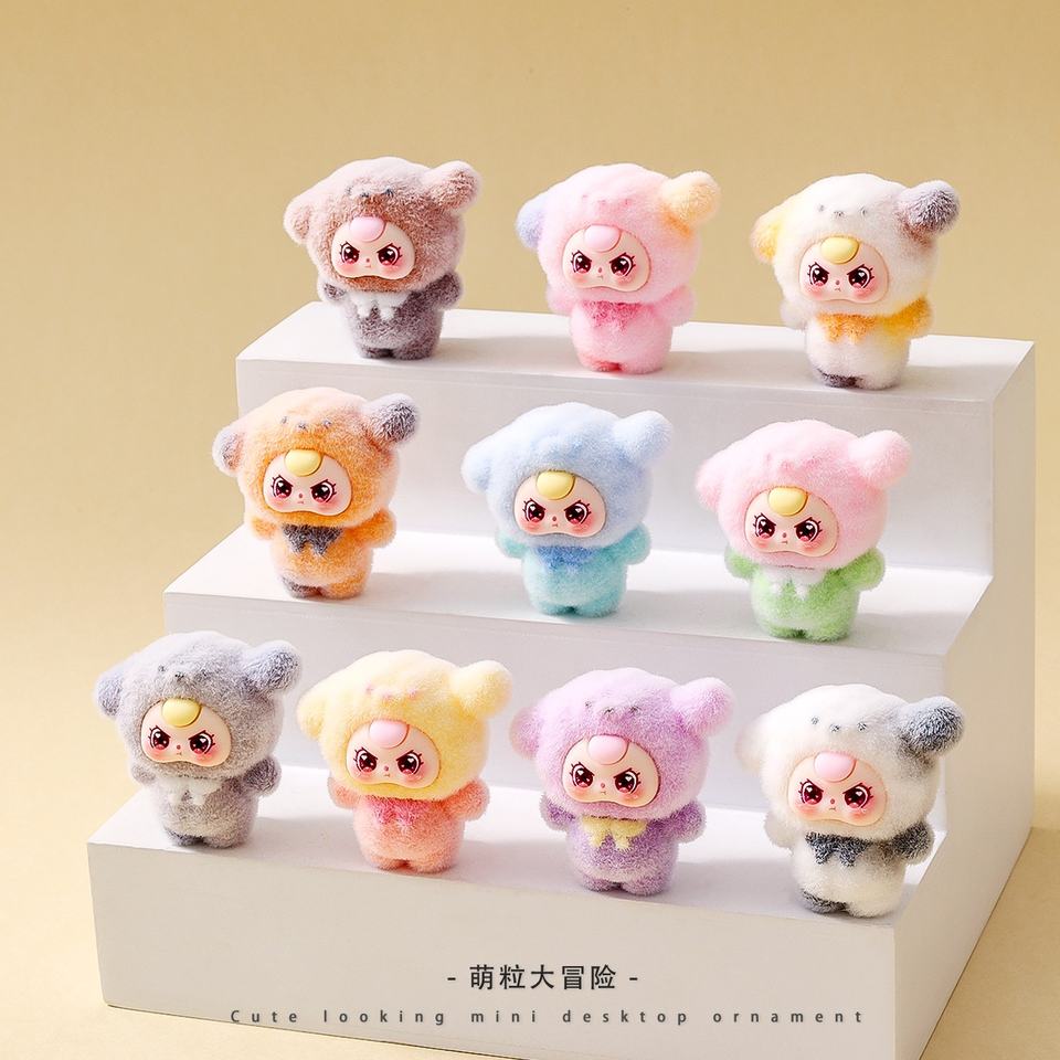 Cute Cartoon Kawaii Standing Mini Flocking Figures Character Doll Figurine for Keychain Mystery Surprise Blind Bag Kids Toy Gift