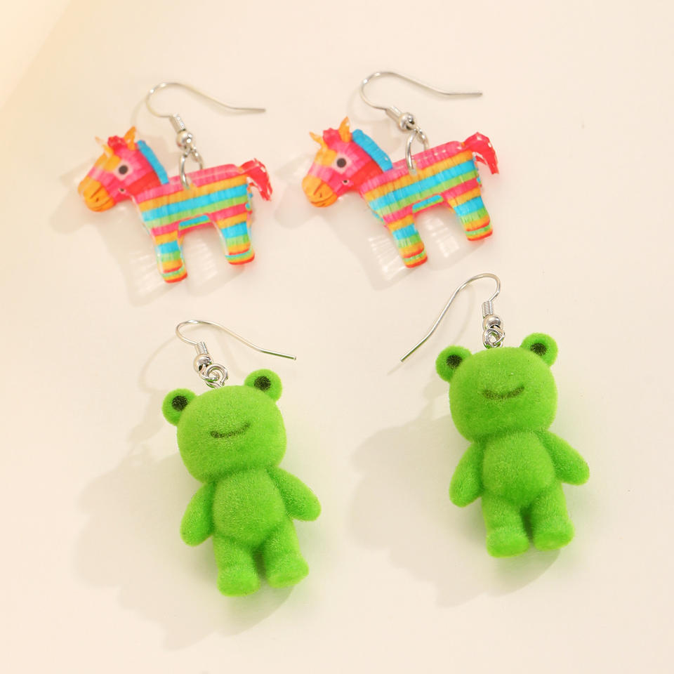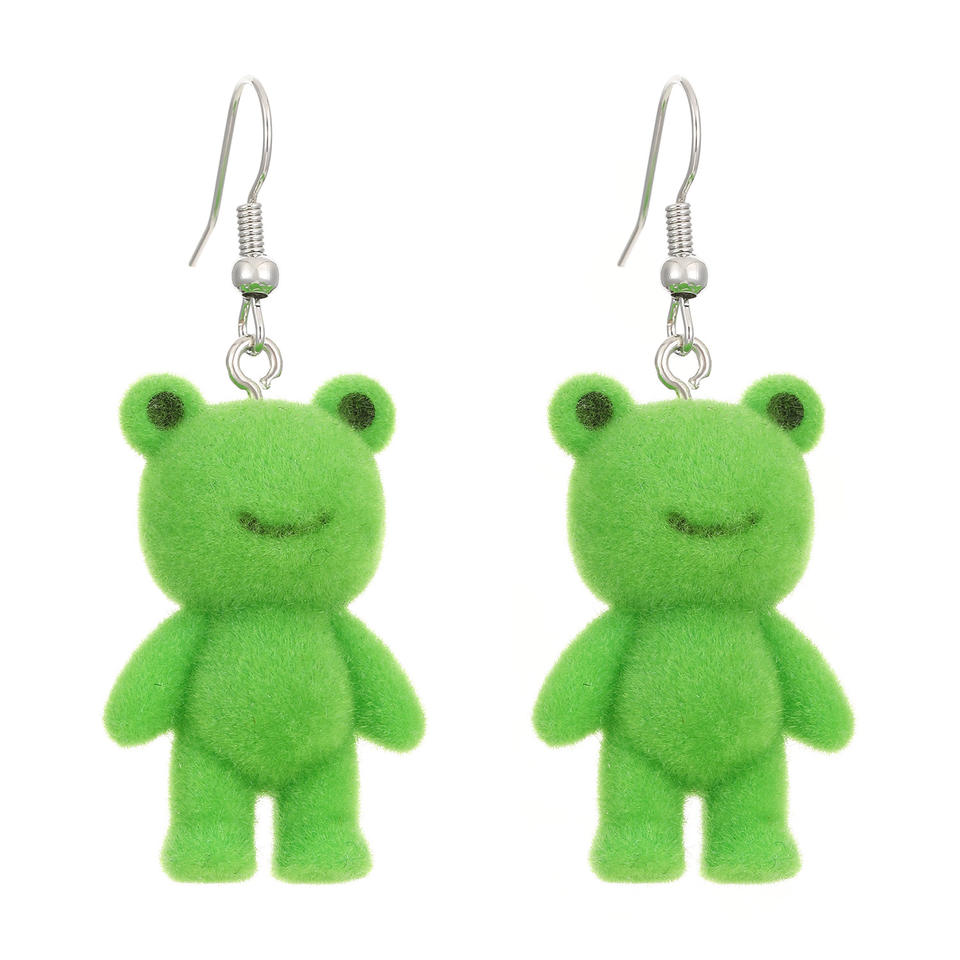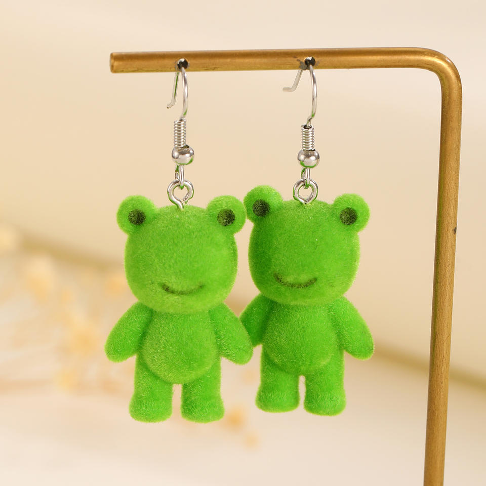Cute Cartoon Resin Flocked Frog Pendant Drop Earrings Fun and Creative Three-dimensional Animal Earrings and Ear Ornaments