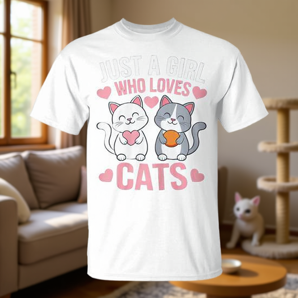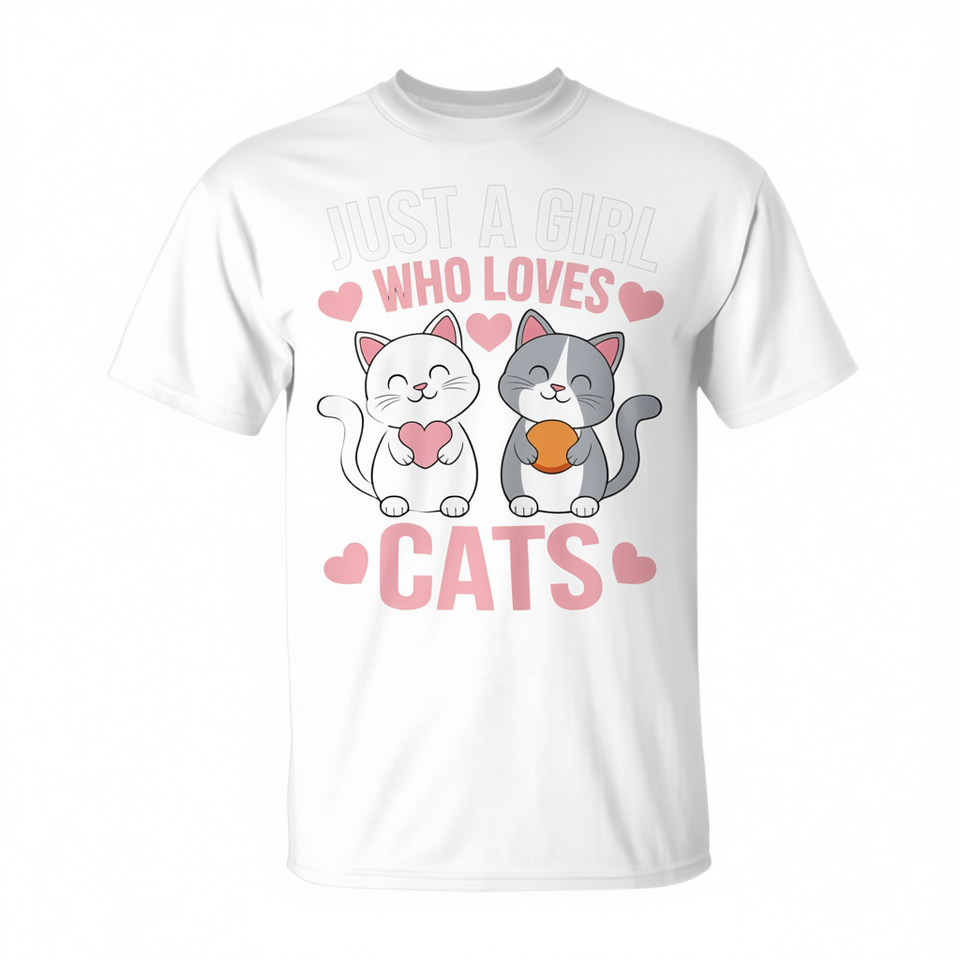 Cute Cat Lover Heart T-Shirt for Kitten Just a Girl Promotional Cute Just a Girl for Who Loves Cats Shirt