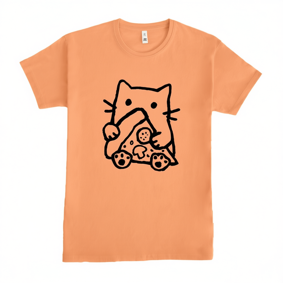 T-shirt con simpatico gatto e pizza, unisex, taglia adulto, piccola, media, grande, extra large