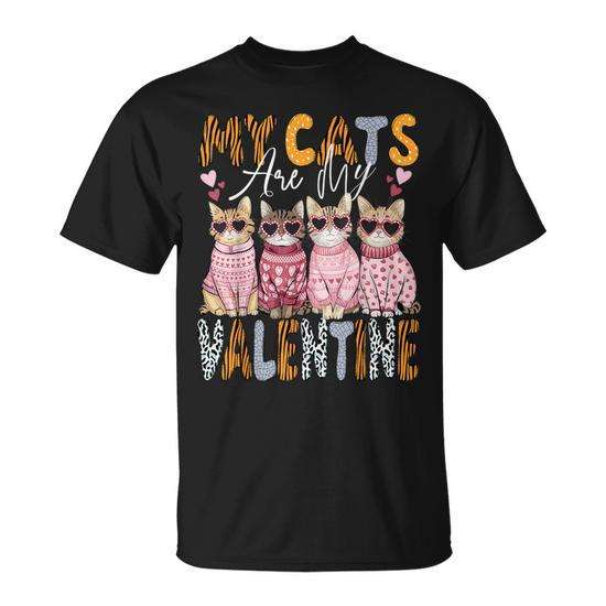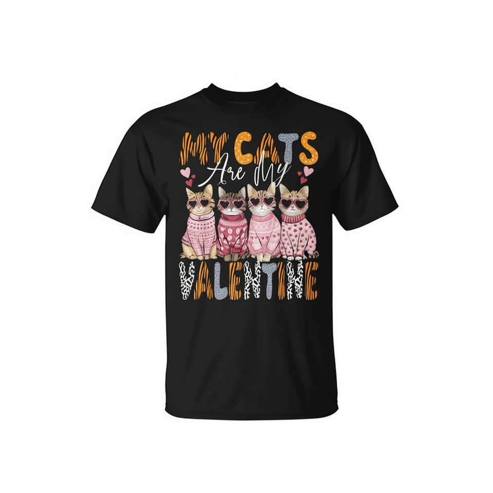 T-Shirt San Valentino con Gattino Carino, Manica Corta, Girocollo, Unisex, Stampa Digitale, Design per Amanti dei Gattini